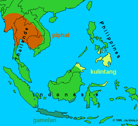 Parmi la multitude et la variété des musiques d'Asie du Sud-Est, il est commode de distinguer trois grandes aires musicales dans la région. Ce sont celles du piphat, du kulintang et du gamelan, trois musiques autochtones. Toutes les trois connaissent le carillon de gongs bulbés, instrument unique à l'Asie du Sud-Est.